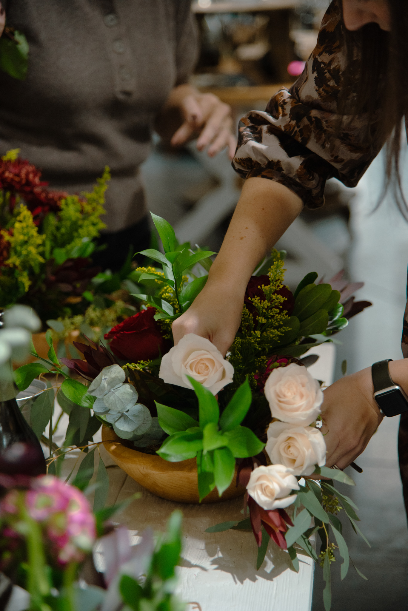 Event photos for C. Holmquist Design floral workshop at Etu Homes in downtown Charleston